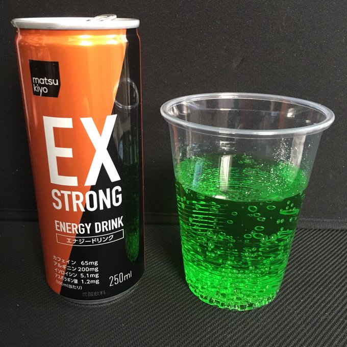 51gで価格は149円。 全国のマツモトキヨシ、ココカラファイングループ店舗とオンラインストアでの数量限定販売となる。 「EXSTRONG RUN&GUNエナジードリンク」を再現したハード食感を楽しめるピーチ味のグミで、1袋にドリンクタイプと同等量のカフェイン162 マツモトキヨシからついに禁断のエナジードリンクが発売されました! お値段150円で、レッドブルの2倍の濃度です! 新発売のLOVE&PEACEはどんな特徴がある? マツキヨエナジードリンクはどれくらいヤバい? 成分比較(量)マツキヨ vs レッドブル vs モンスターエナジー 成分比 マツモトキヨシのエナジードリンク ex storong 3種類を混ぜてみました。 左はキャフーンです。 右が混合物です。 透き通った緑が 怪しげで仕方がない。 味はね、 それぞれの主張がすごくて うるさかったですね。 進んで飲みたくはない。 着色料ってすごい